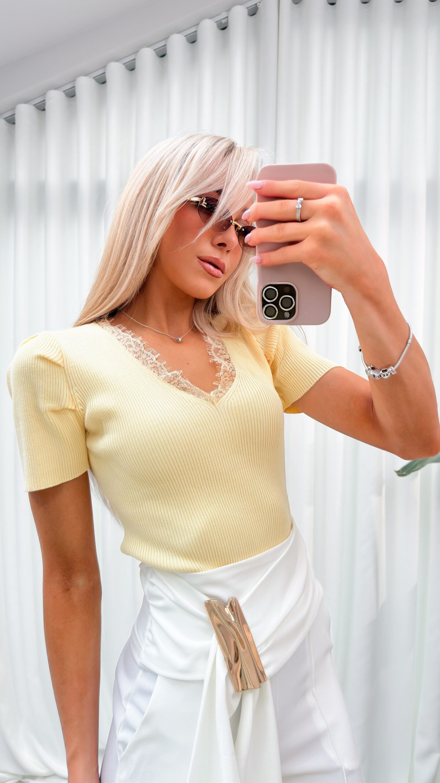 • Biżuteryjny akcent: Pas został ozdobiony dużą, złotą klamrą o nieregularnym kształcie, która dodaje całości prestiżowego charakteru.