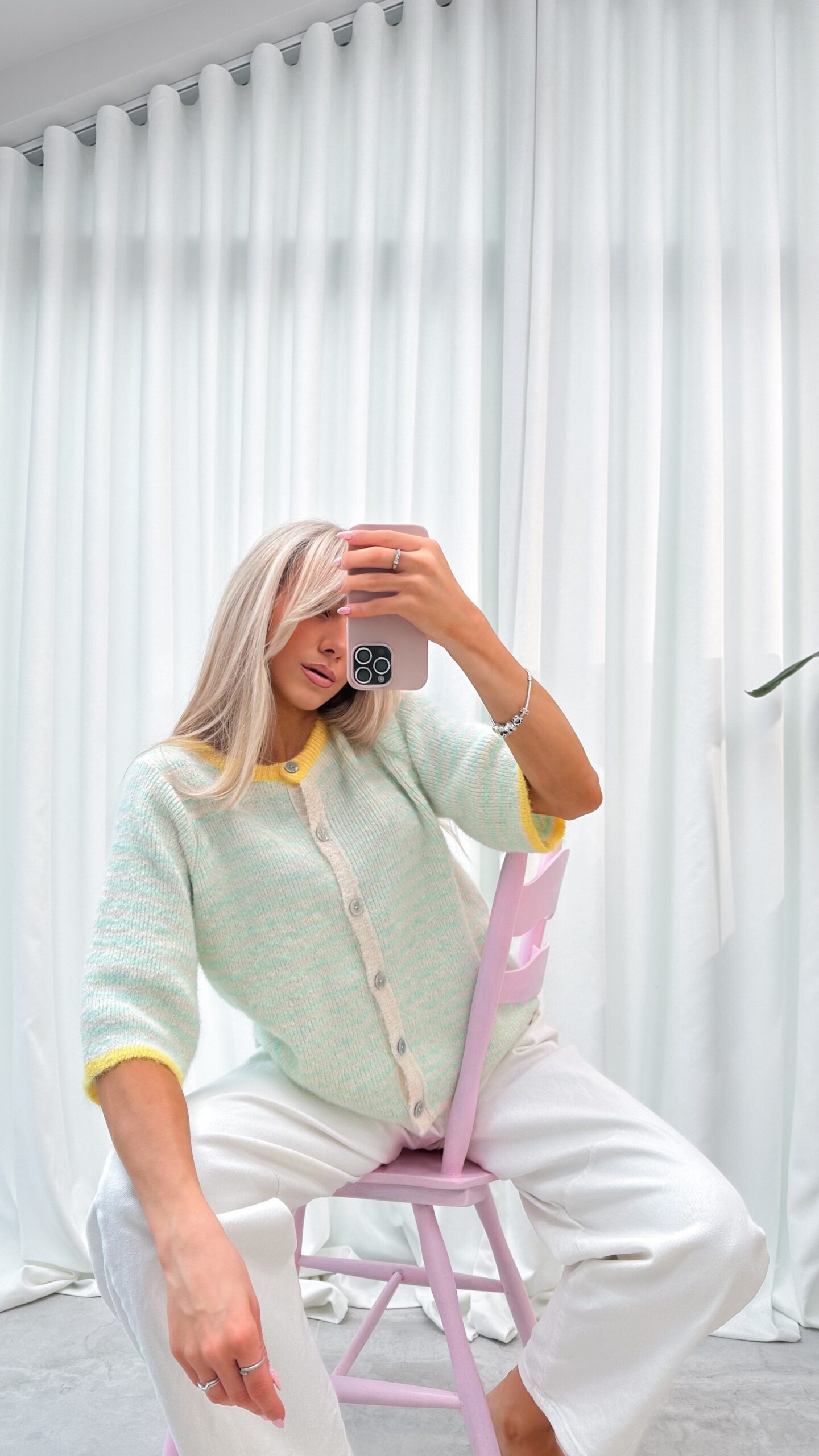 Klasyczne paski: Ponadczasowy wzór w poziome paski nadaje całości charakteru i sprawia, że sweterek pasuje do wielu zestawień.